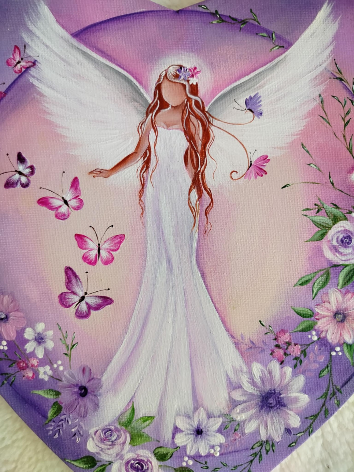 Andělský obrázek ve tvaru srdce, malovany na platno. 30cm