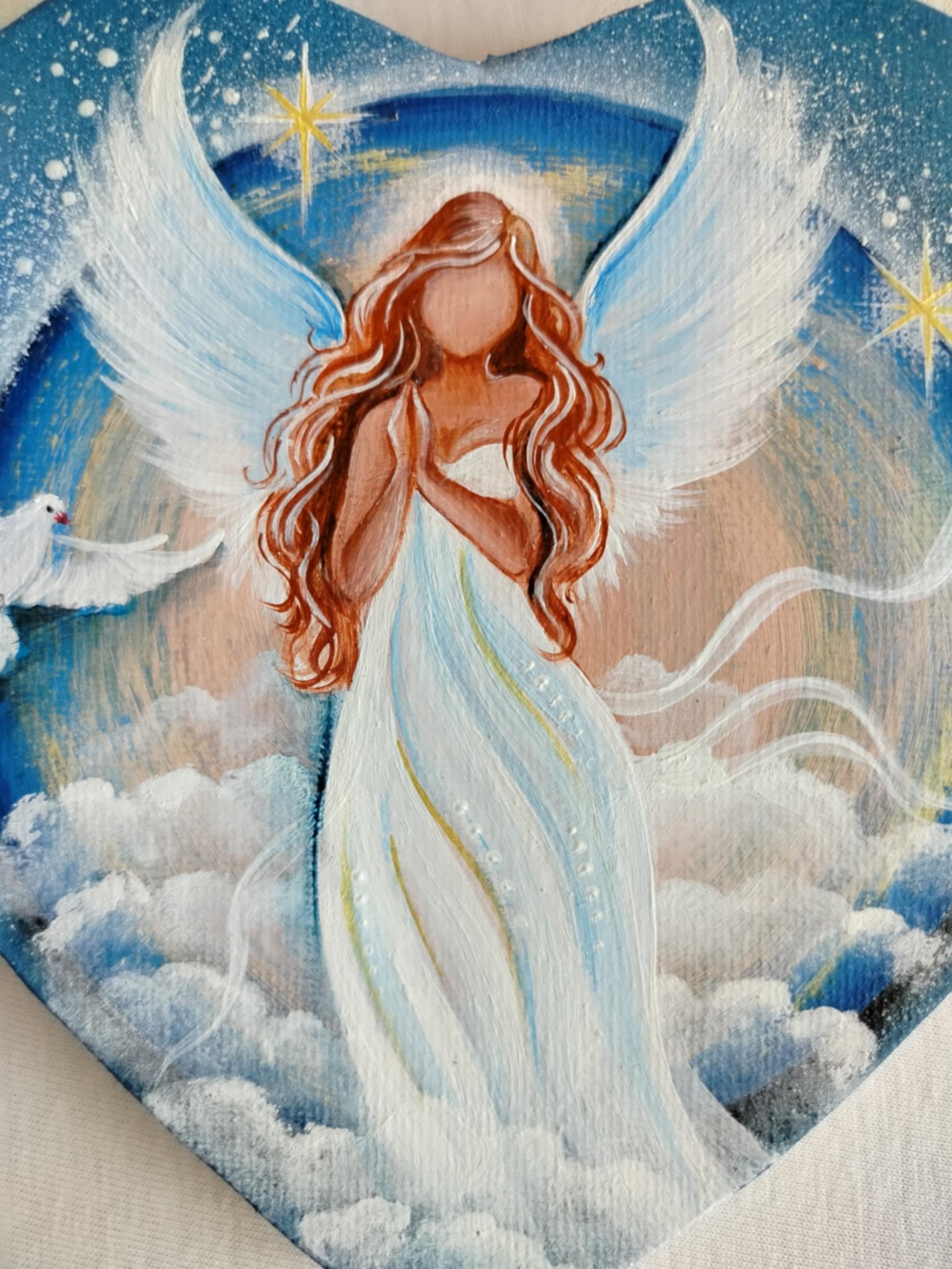 Přináší vám pocit klidu, bezpečí a pokory. Malováno na pláténku ve tvaru srdíčka o průměru 15cm.